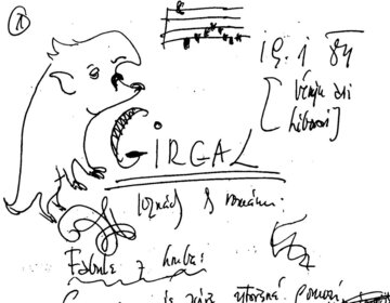 „… Během psaní této knihy jsem se dlouho poctivě domníval, že jméno Girgal je můj výmysl. Když jsem byl asi v polovině, zjistil jsem s překvapením, že za první republiky byl na Smíchově nakladatel Otto Girgal. Jeho nakladatelství mělo emblém sestávající ze tří stojících knih, hřbetem k pozorovateli, za nimiž se ukazovalo něco jako planeta Saturn, či snad jakýsi glóbus, a mrak typu kumulus. Když jsem toto zjistil, srostlo již jméno Girgal s mým hrdinou tak podstatně, že je nebylo lze rozpojit bez zabití postavy…“